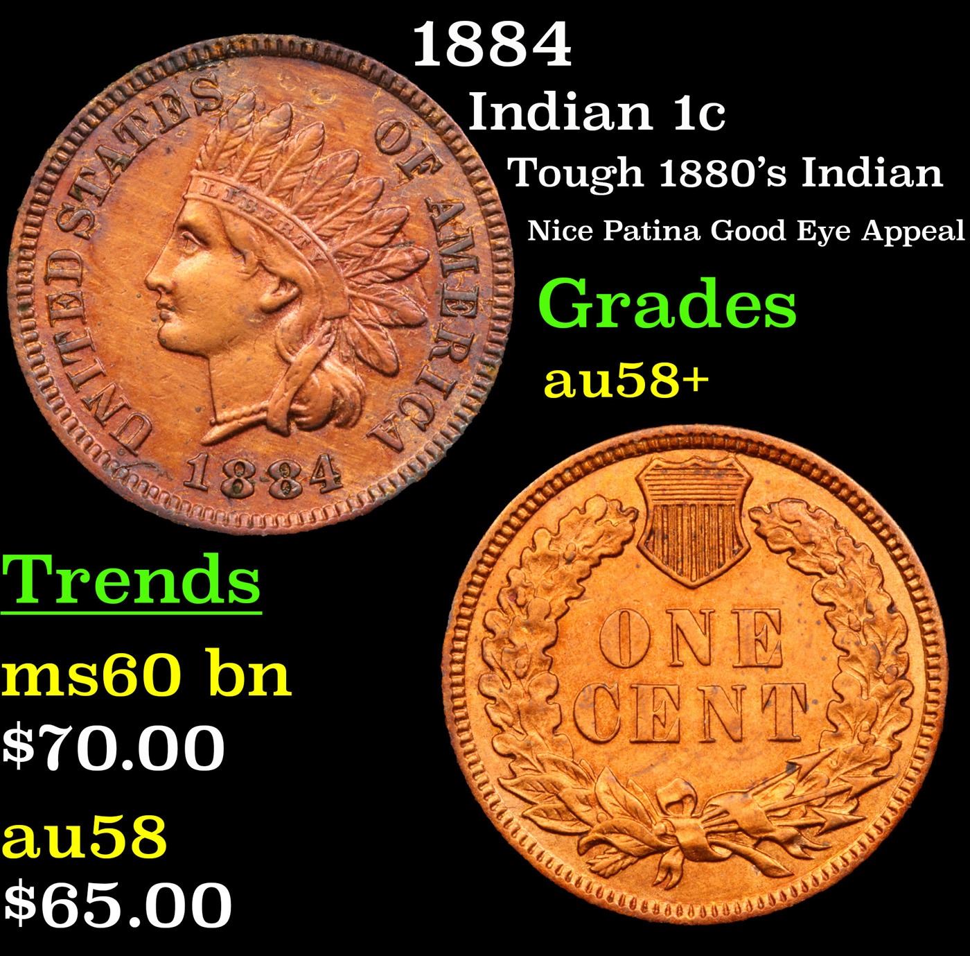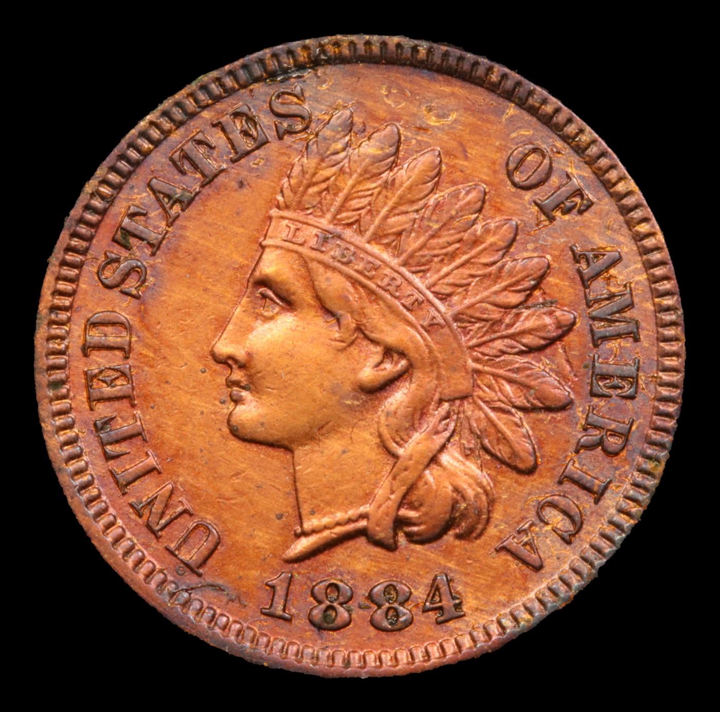 1884 Indian Cent 1c Grades Choice AU/BU Slider+.