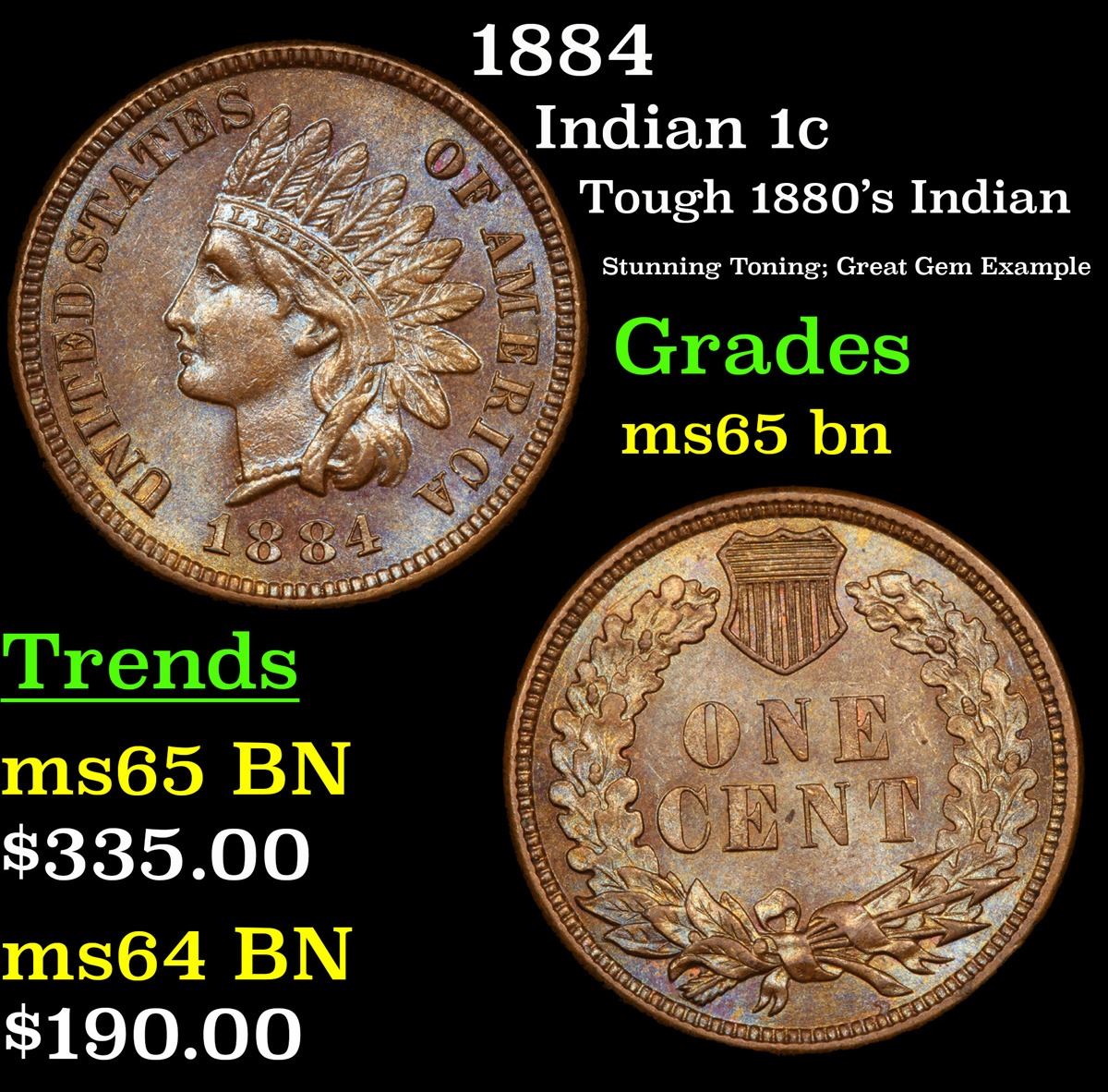 1884 Tough 1880's Indian Stunning Toning; Great Gem Example Indian Cent 1c Grades GEM Unc BN. A Corey's Pick