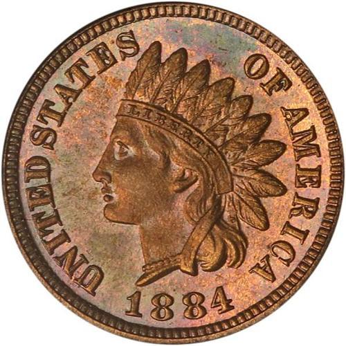 <b>1884 Indian Head Cent. NGC graded PF66 R.</b> NGC Pop: 15/8. Sparkling and satiny golden red with rich coppery iridescence near the rims. Additionally, there is sheer boldness of strike throughout, to us this coin meets the challenge to strike completely. The design left after the rebound of the dies is in an excellent state at the centers as well as the legends and date <b>(PCGS # 2341)</b>