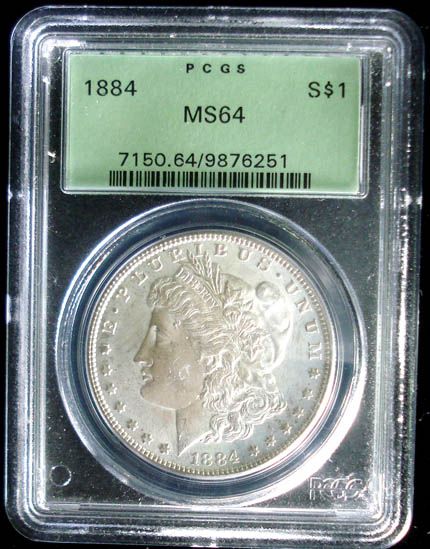 1884 MORGAN SILVER DOLLAR, PCGS MS64, GREEN LABEL