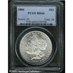 <B>1884<img border='0' src='http://www.heritagecoins.com/images/star.gif' width=10 height=10>$1 MS66 PCGS.</B></I> Sharply struck and untoned, with bright, highly attractive, nearly pristine surfaces. A sparkling premium Gem. Lot:10139