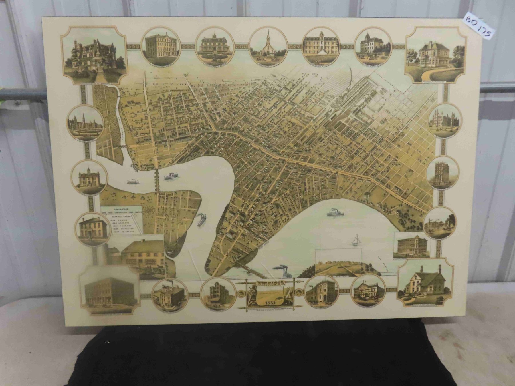 1884 Map of Winnipeg Mounted on Board 35" x 25"
