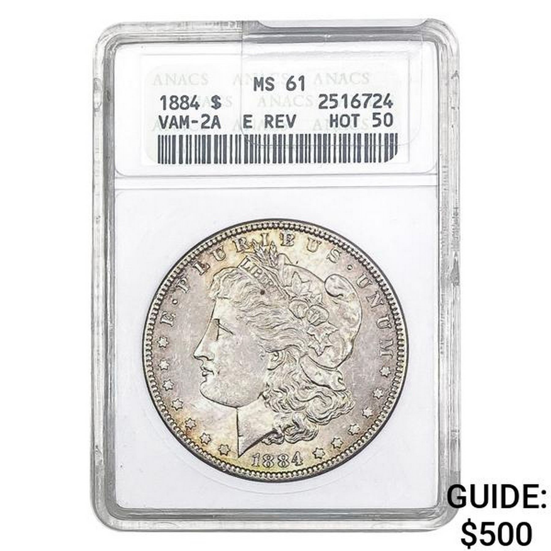 1884 Morgan Silver Dollar ANACS MS61 VAM-2A E REV