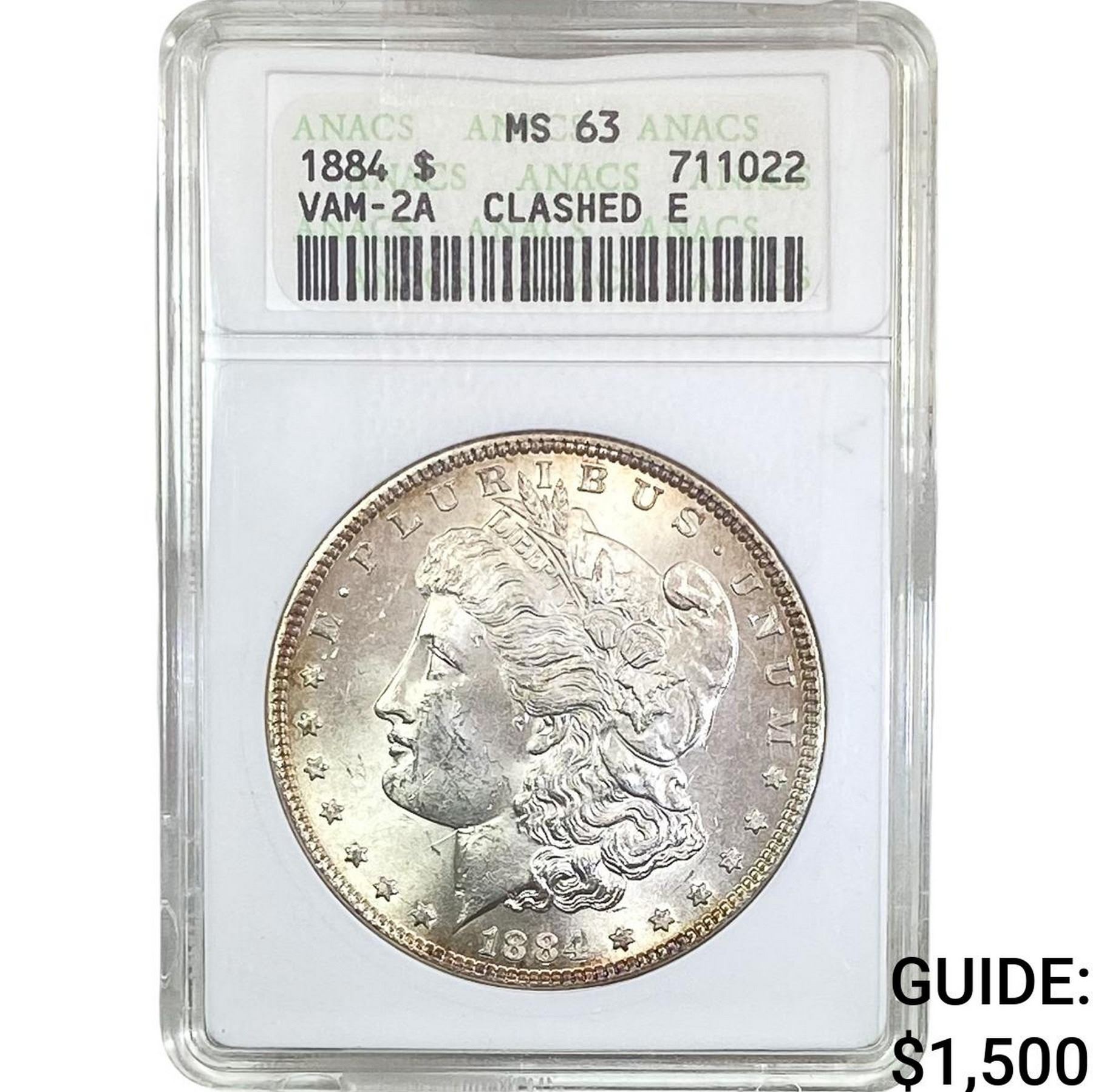 1884 Morgan Silver Dollar ANACS MS63 Vam-2A, Clashed E