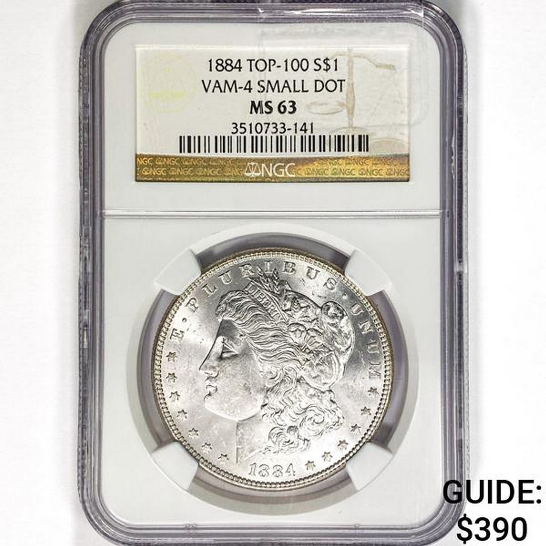 1884 Morgan Silver Dollar NGC MS63 VAM-4, Sm. Dot