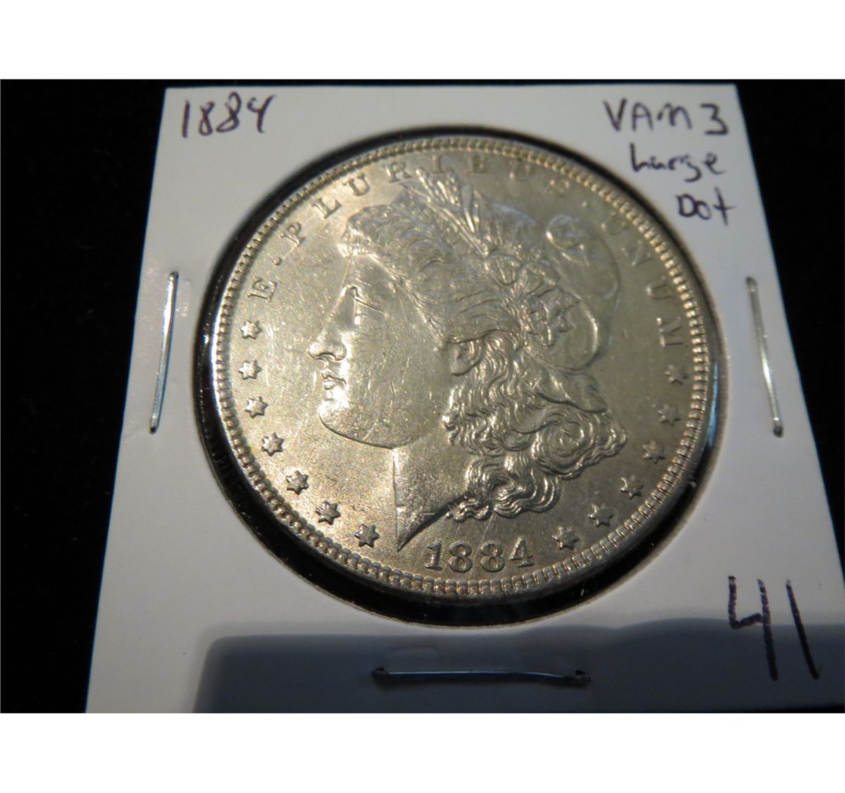 1884 Morgan Silver Dollar - Top 100 VAM 3 Large Dot next to Designers initial