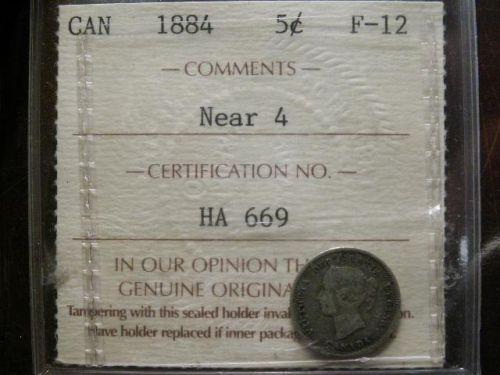 1884 "Near 4" 5¢ ICCS F12. Lightly toned. Key date.