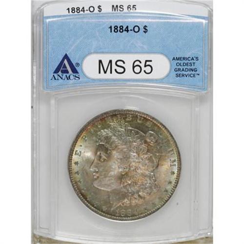 <B>1884-O $1 MS65 ANACS.</B></I> . NGC Census: (13335/1462). PCGS Population (10411/1052). Mintage: 9,730,000. Numismedia Wsl. Price for NGC/PCGS coin in MS65: $120. (#7154)<BR><BR><B>Coin Engraver:</B> George T. Morgan<BR><BR><b>Shipping:</b> Coins & Currency (<a target="_blank" href="http://www.heritageauctions.com/common/shipping.php">view shipping information</a>)