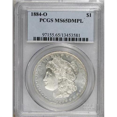 <B>1884-O $1 MS65 Deep Mirror Prooflike PCGS.</B></I> Well struck with deep reflectivity in the fields and mildly frosted devices. Untoned and carefully preserved, this piece displays relatively few marks. Deep Mirror Prooflike examples of this issue are not rare, but they are not commonplace at the MS65 grade level. <BR><BR><b>Shipping:</b> Coins & Currency (<a target="_blank" href="http://www.heritageauctions.com/common/shipping.php">view shipping information</a>)