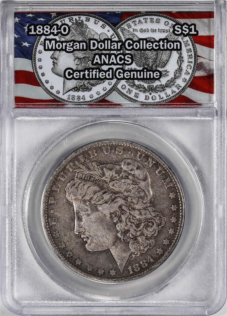 One 1884-O $1 Morgan Silver Dollar Coin ANACS Genuine. ANACS Certified.