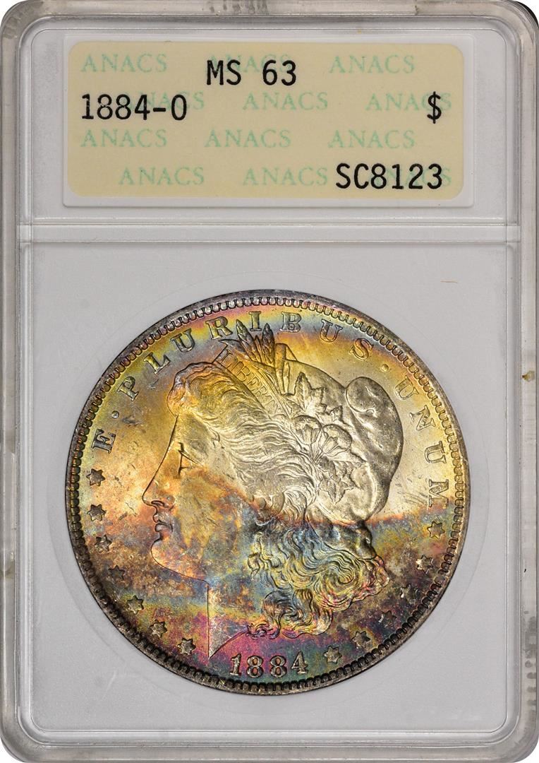 1884-O $1 Morgan Silver Dollar Coin ANACS MS62 Amazing Toning