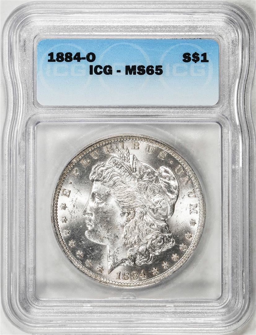 One 1884-O $1 Morgan Silver Dollar Coin ICG MS65. ICG Certified.