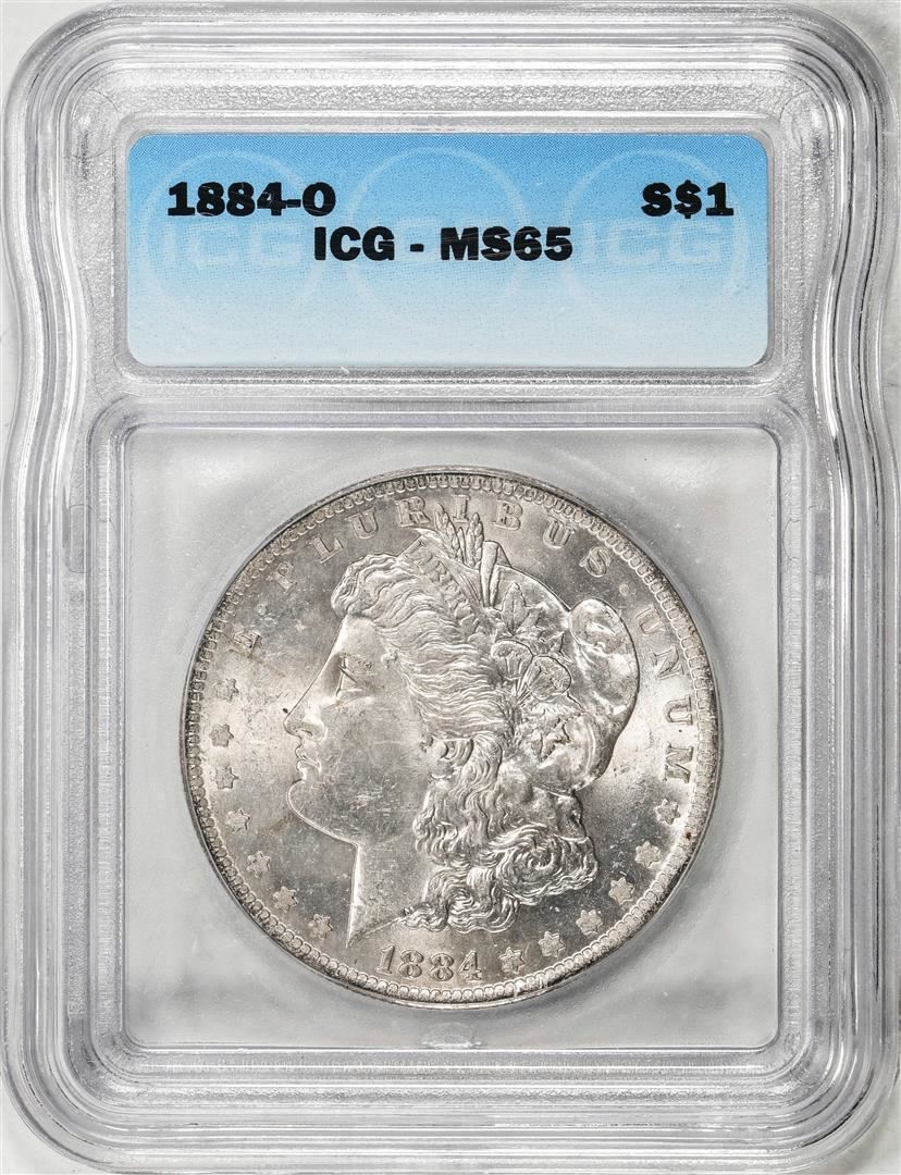 One 1884-O $1 Morgan Silver Dollar Coin ICG MS65. ICG Certified.
