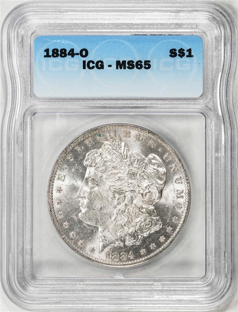 One 1884-O $1 Morgan Silver Dollar Coin ICG MS65. ICG Certified.