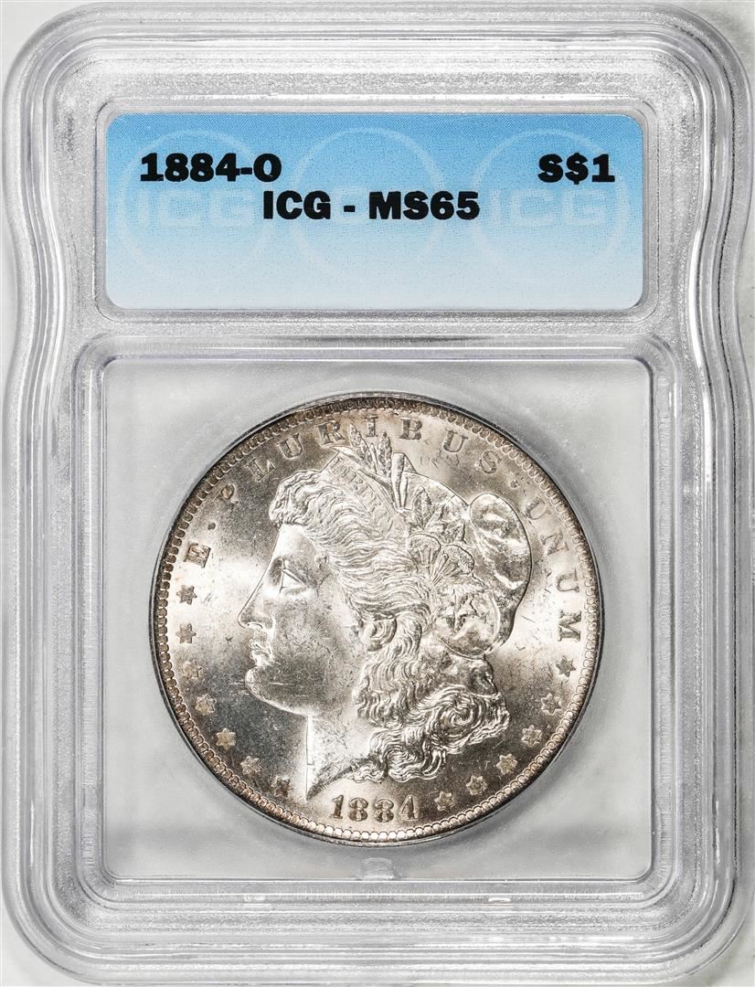 One 1884-O $1 Morgan Silver Dollar Coin ICG MS65. ICG Certified.