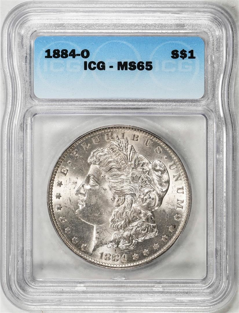 One 1884-O $1 Morgan Silver Dollar Coin ICG MS65. ICG Certified.