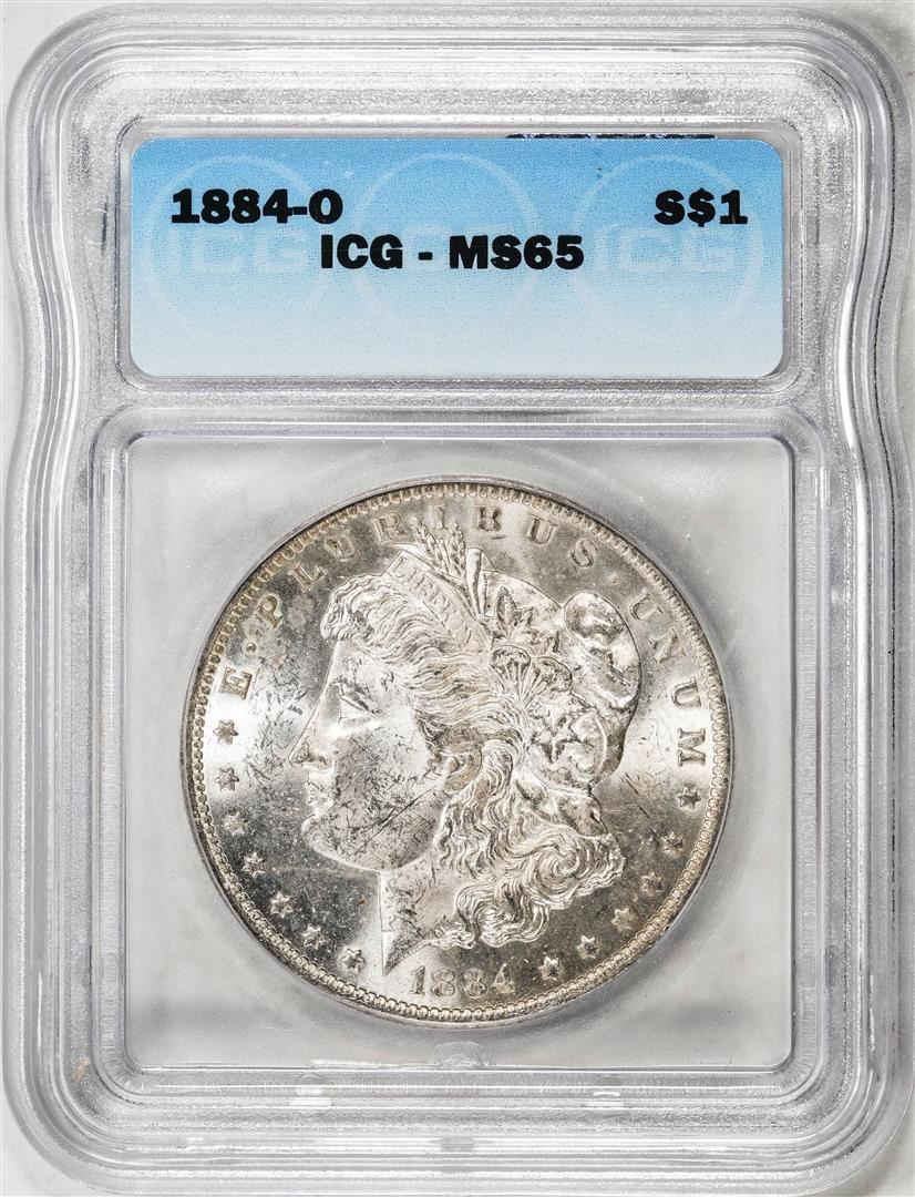 One 1884-O $1 Morgan Silver Dollar Coin ICG MS65. ICG Certified.