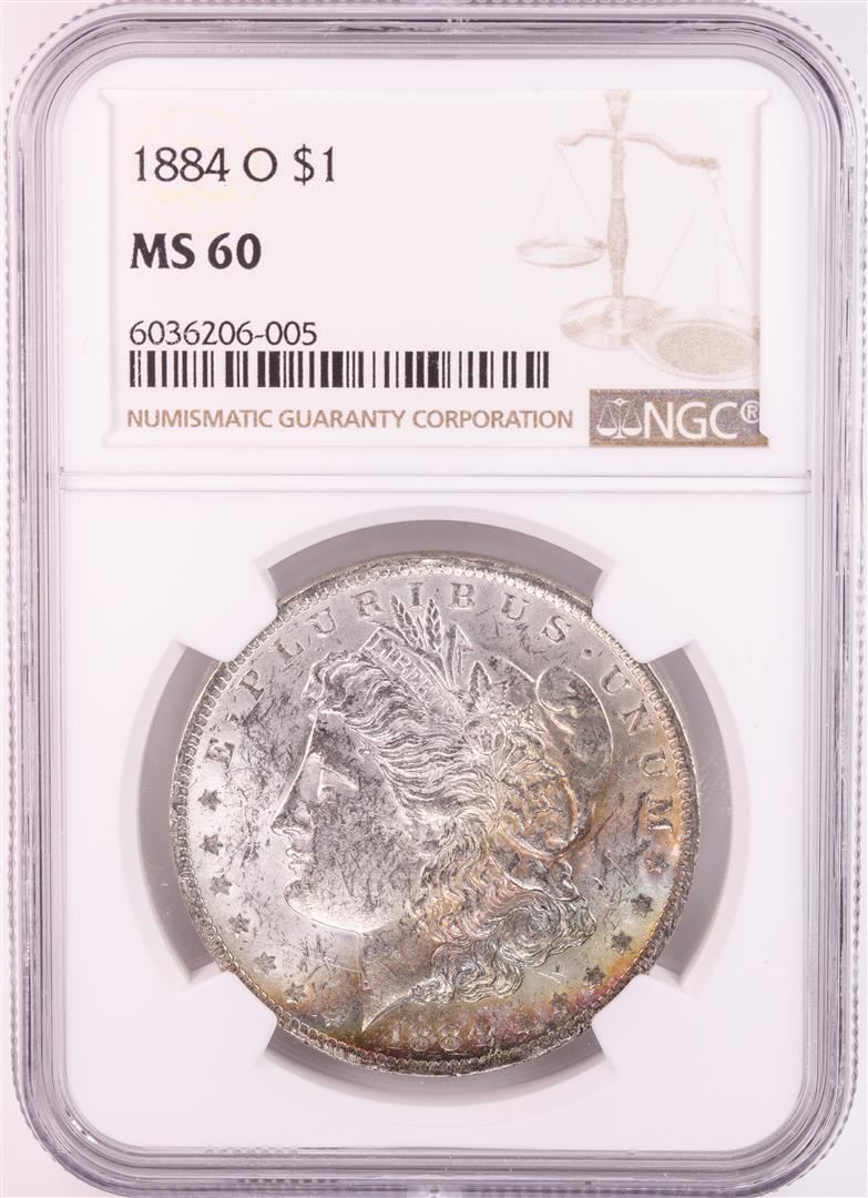 One 1884-O $1 Morgan Silver Dollar Coin NGC MS60 Great Toning. NGC Certified.