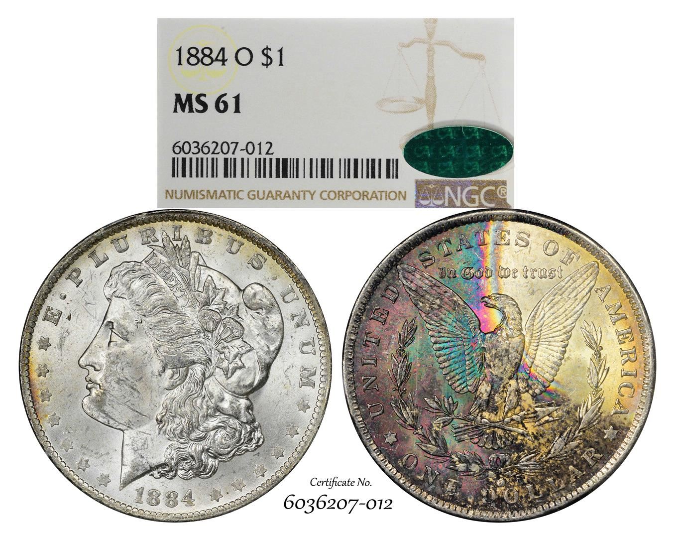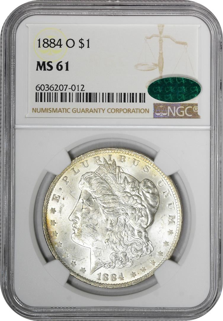 One 1884-O $1 Morgan Silver Dollar Coin NGC MS61 CAC Great Toning. NGC Certified.