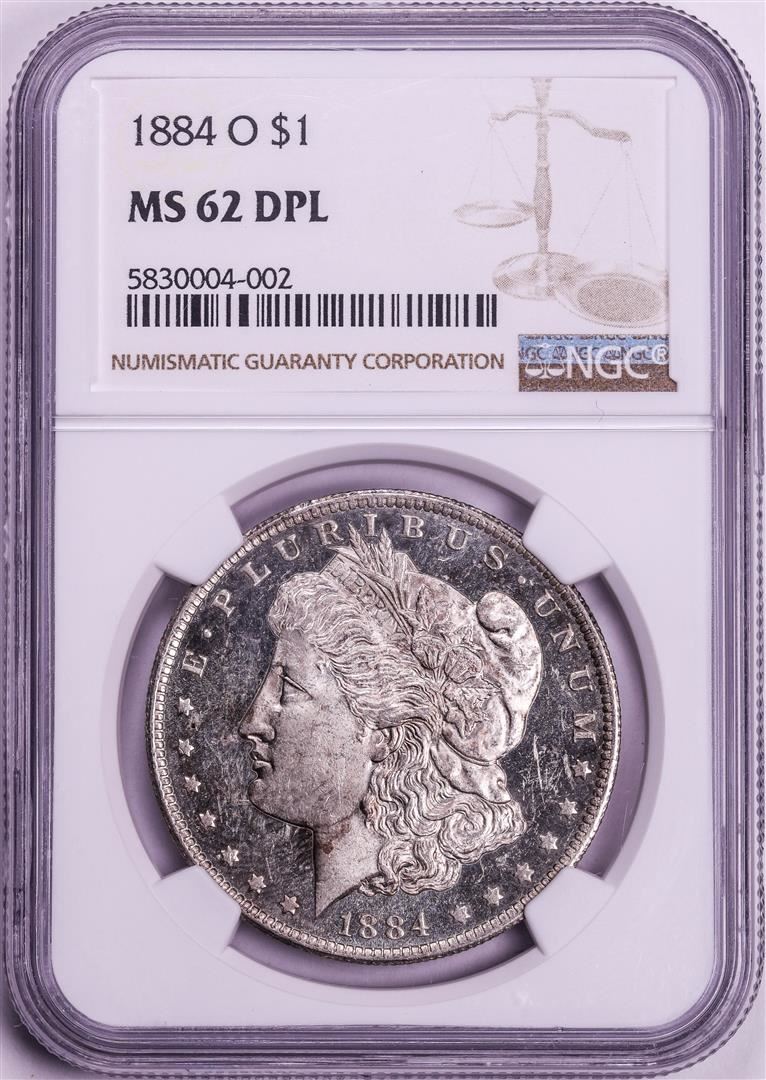 One 1884-O $1 Morgan Silver Dollar Coin NGC MS62 DPL. NGC Certified.