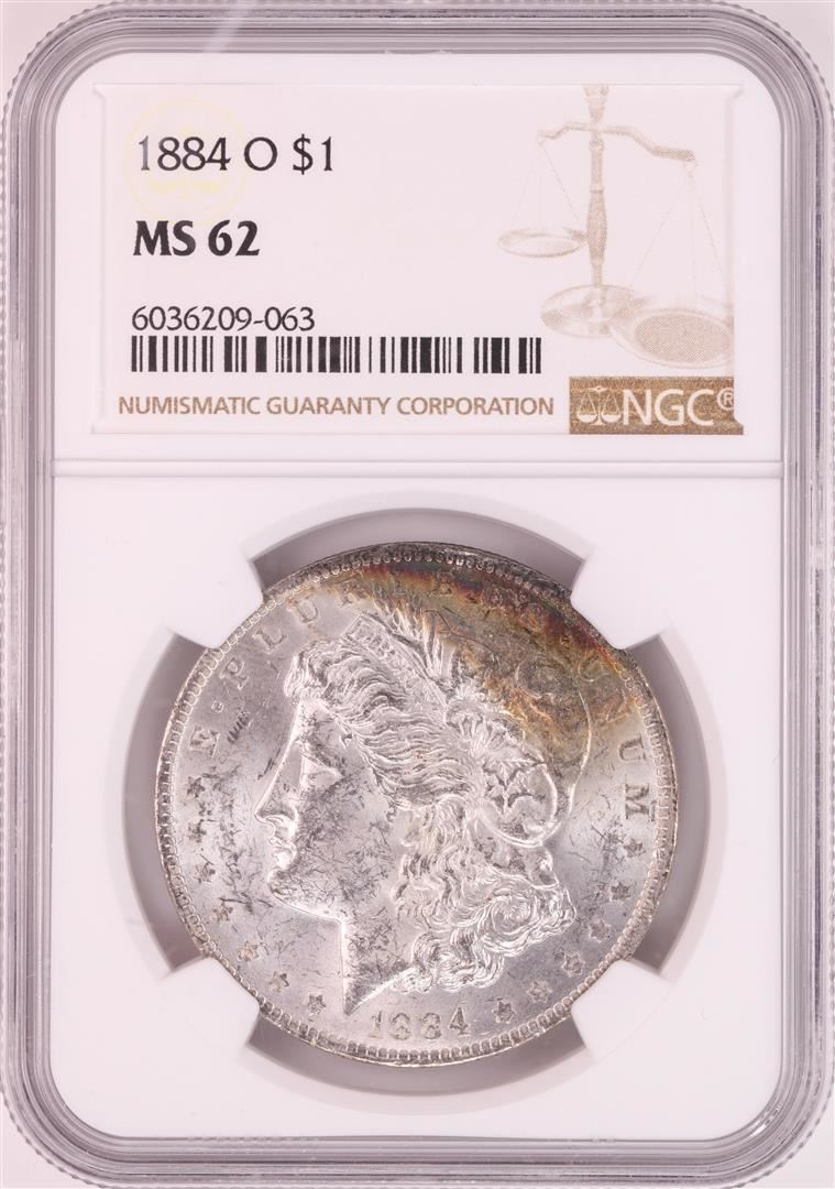 One 1884-O $1 Morgan Silver Dollar Coin NGC MS62 Great Toning. NGC Certified.