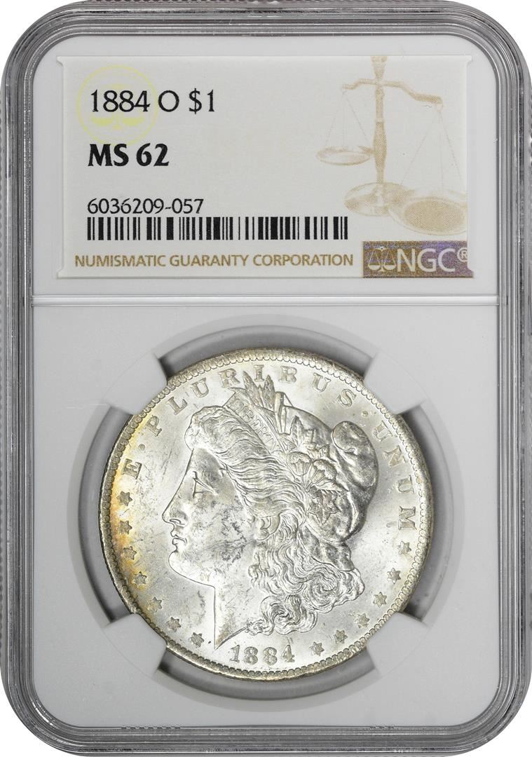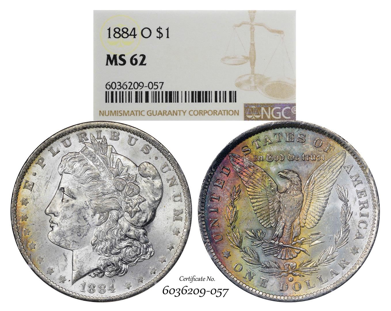 One 1884-O $1 Morgan Silver Dollar Coin NGC MS62 Great Toning. NGC Certified.