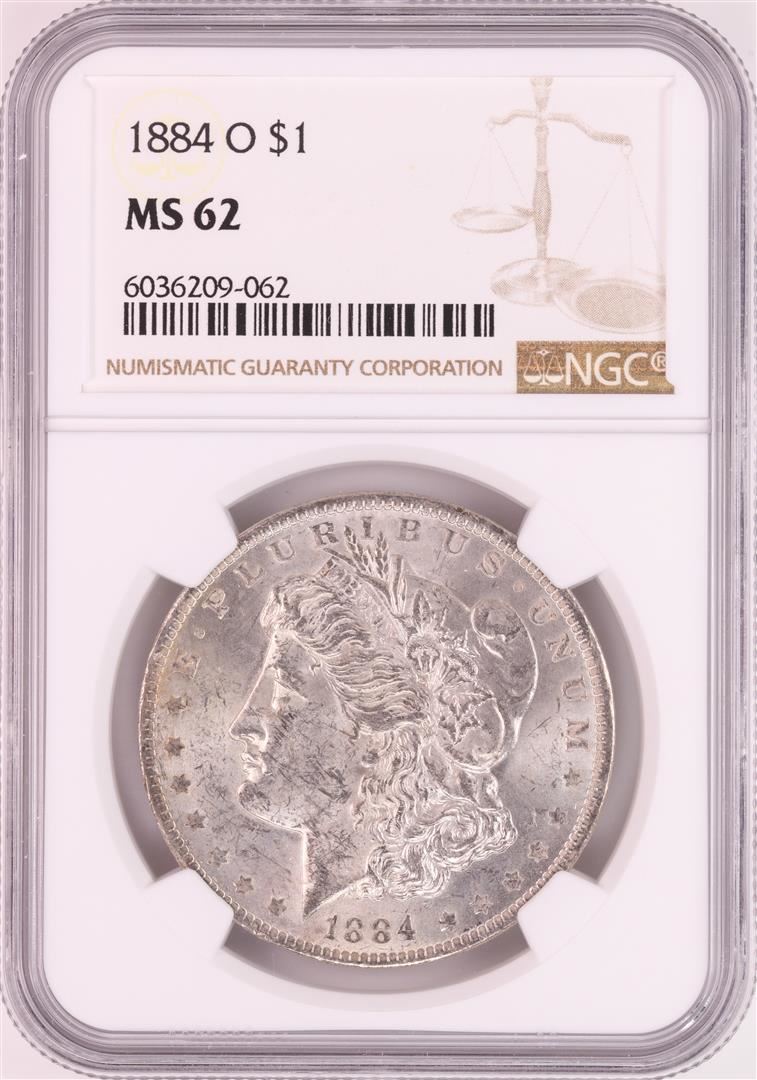 One 1884-O $1 Morgan Silver Dollar Coin NGC MS62 Nice Toning. NGC Certified.