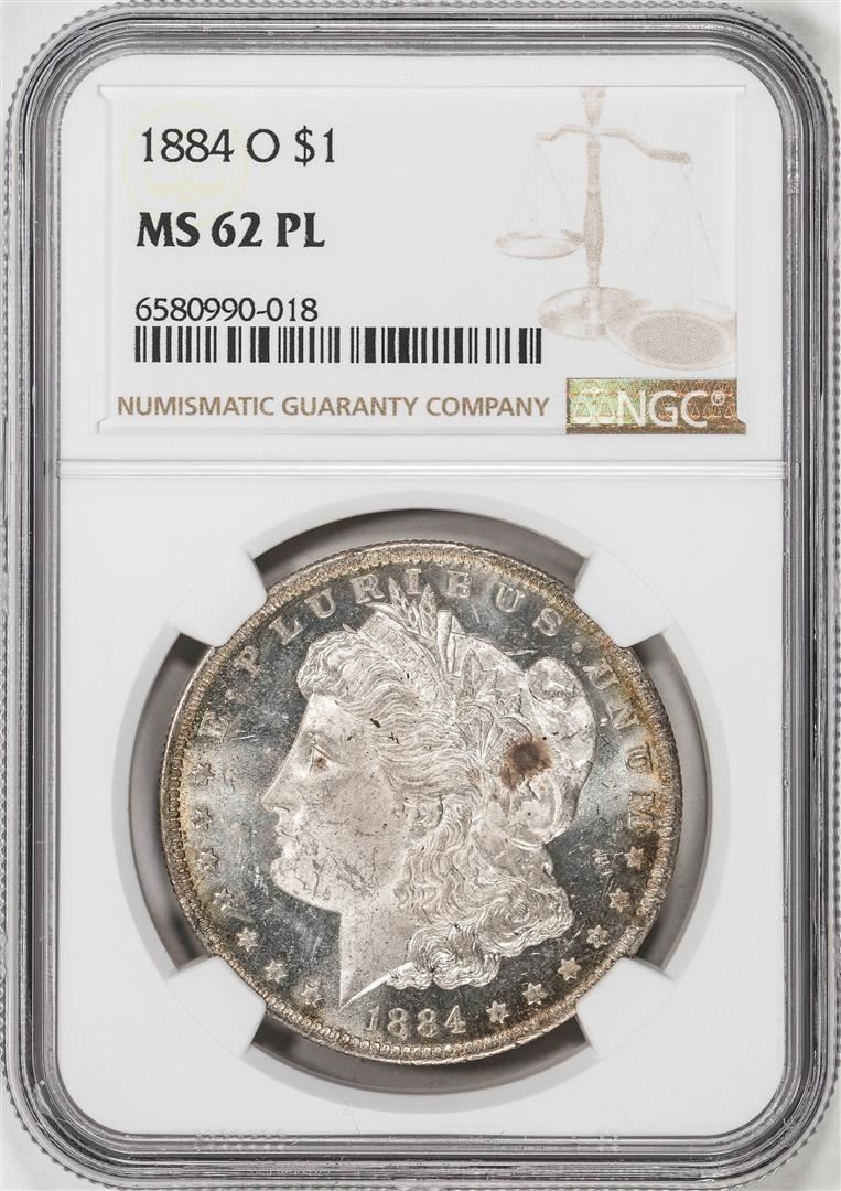 One 1884-O $1 Morgan Silver Dollar Coin NGC MS62PL. NGC Certified.