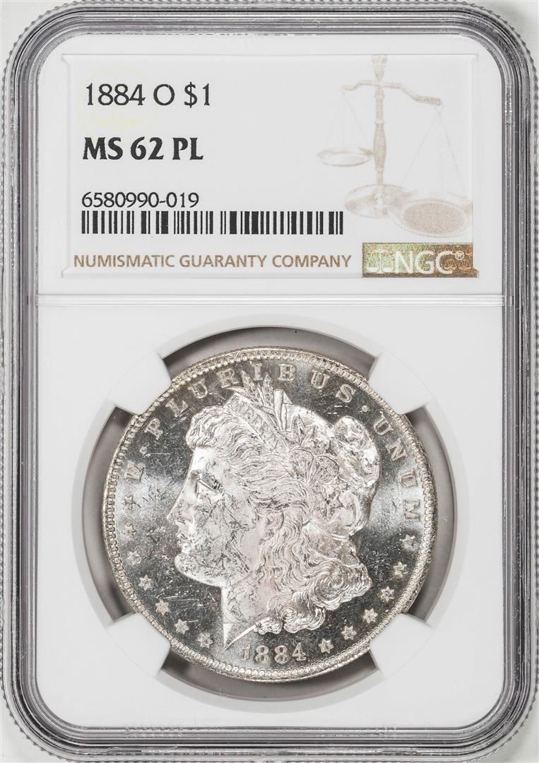 One 1884-O $1 Morgan Silver Dollar Coin NGC MS62PL. NGC Certified.