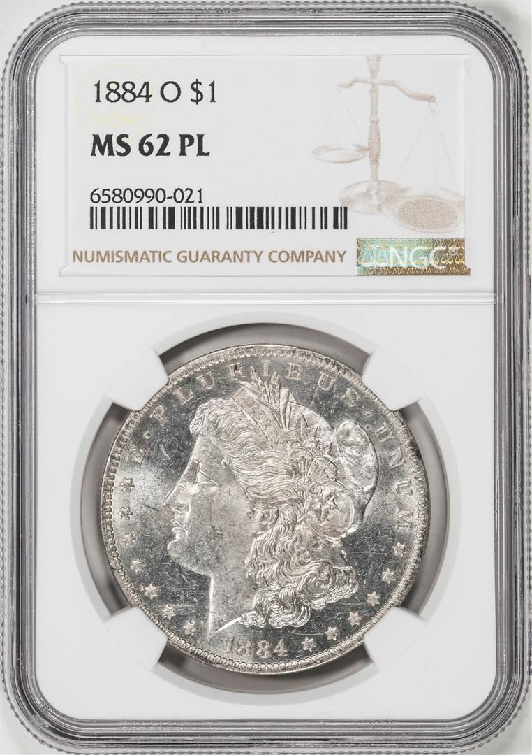 One 1884-O $1 Morgan Silver Dollar Coin NGC MS62PL. NGC Certified.