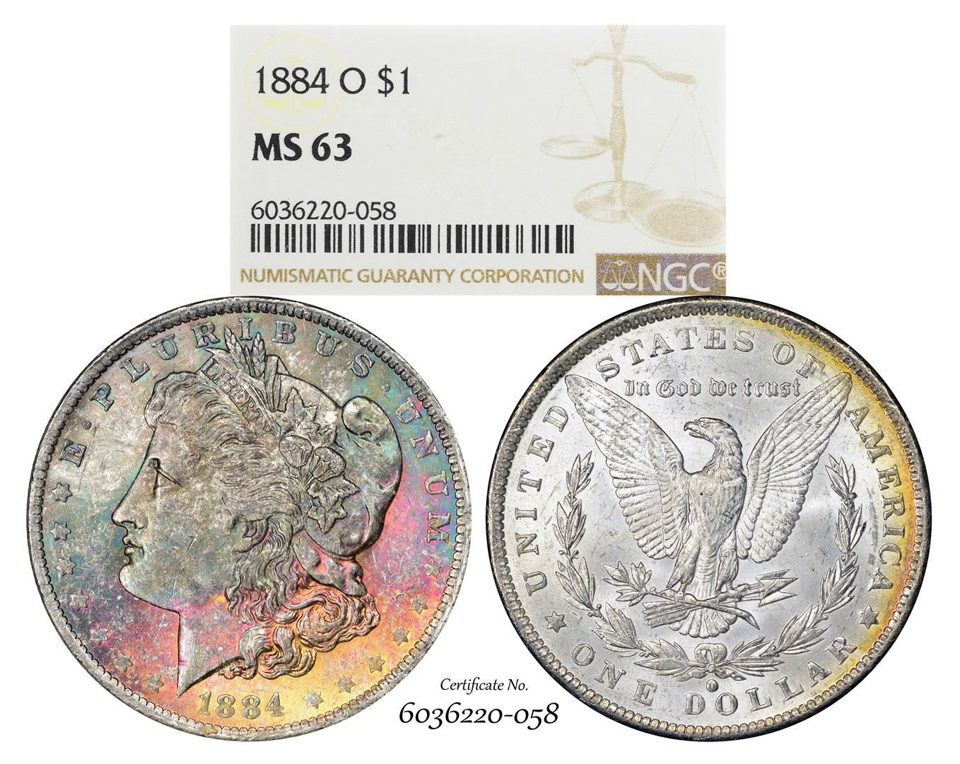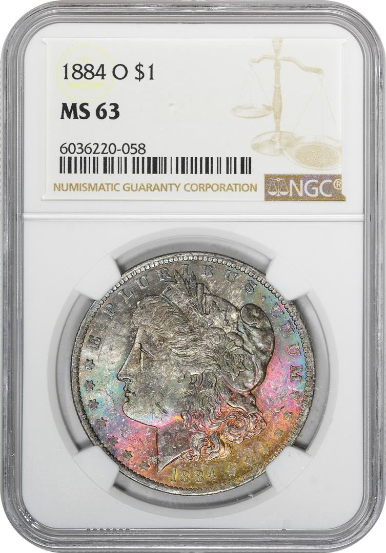 One 1884-O $1 Morgan Silver Dollar Coin NGC MS63 Amazing Toning. NGC Certified.