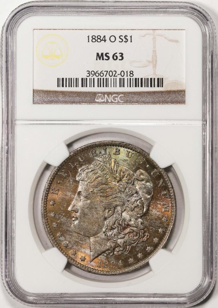 One 1884-O $1 Morgan Silver Dollar Coin NGC MS63 Amazing Toning. NGC Certified.