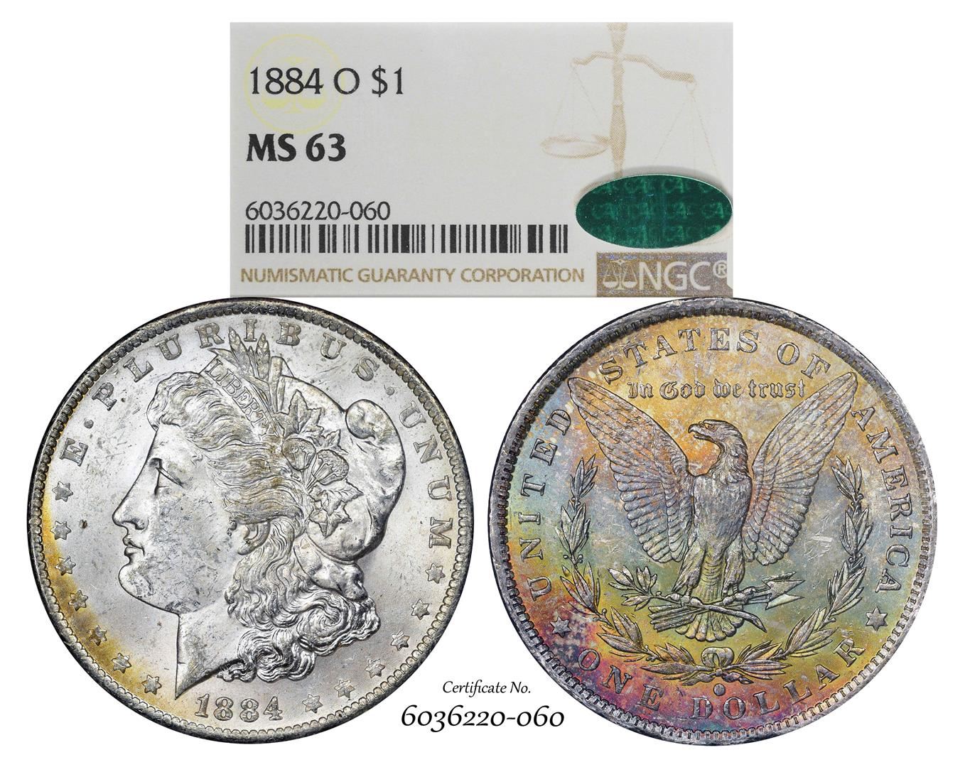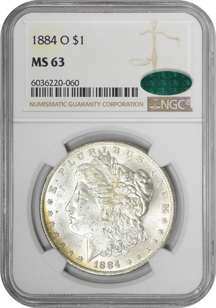 One 1884-O $1 Morgan Silver Dollar Coin NGC MS63 CAC Amazing Toning. NGC Certified.