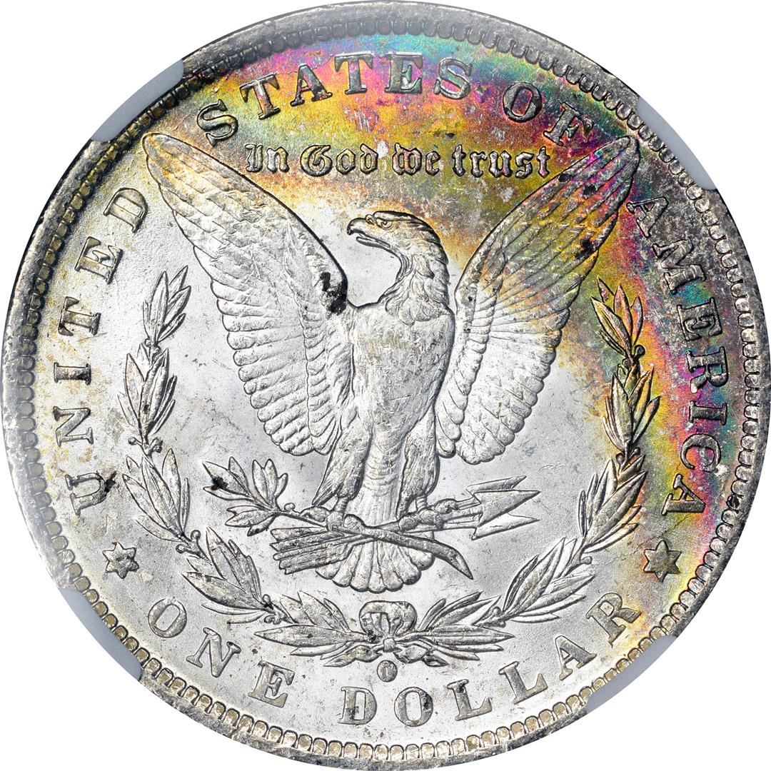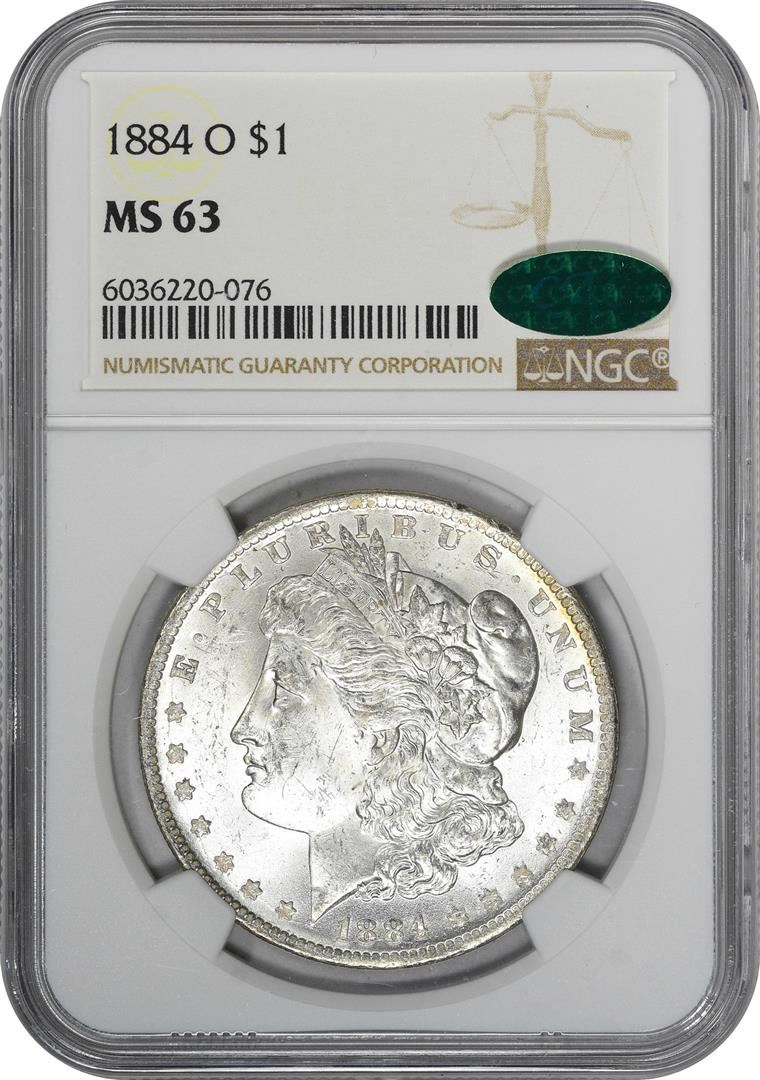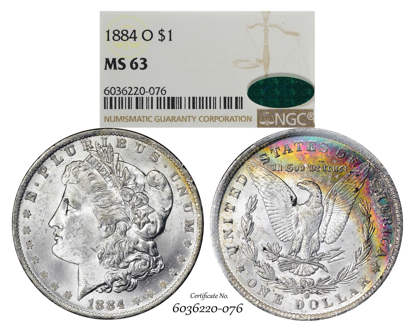 One 1884-O $1 Morgan Silver Dollar Coin NGC MS63 CAC Amazing Toning. NGC Certified.