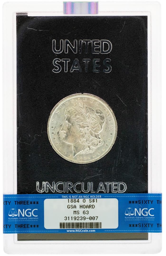 One 1884-O $1 Morgan Silver Dollar Coin NGC MS63 GSA Hoard with Box. NGC Certified.