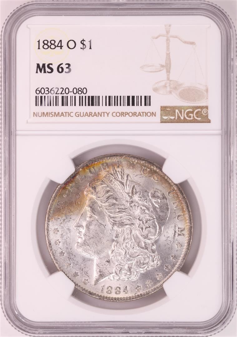 One 1884-O $1 Morgan Silver Dollar Coin NGC MS63 Great Toning. NGC Certified.