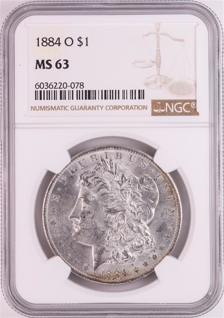 One 1884-O $1 Morgan Silver Dollar Coin NGC MS63 Great Toning. NGC Certified.