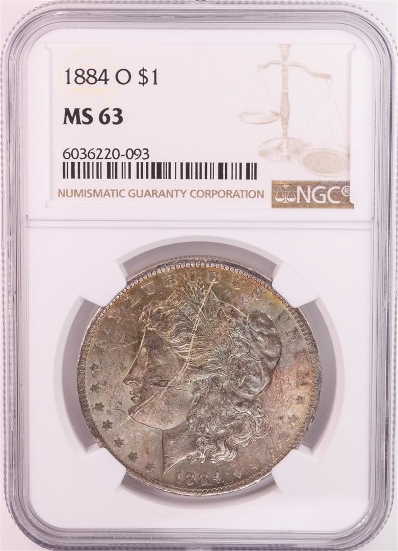 One 1884-O $1 Morgan Silver Dollar Coin NGC MS63 Great Toning. NGC Certified.