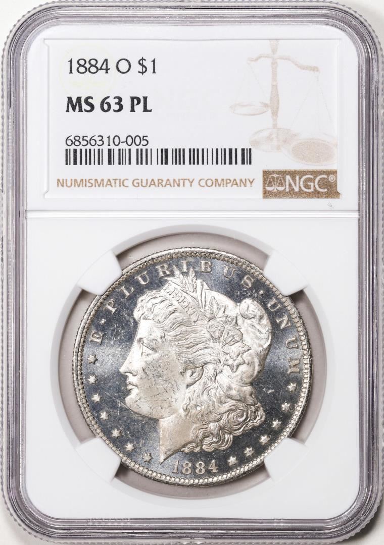One 1884-O $1 Morgan Silver Dollar Coin NGC MS63 PL. NGC Certified.