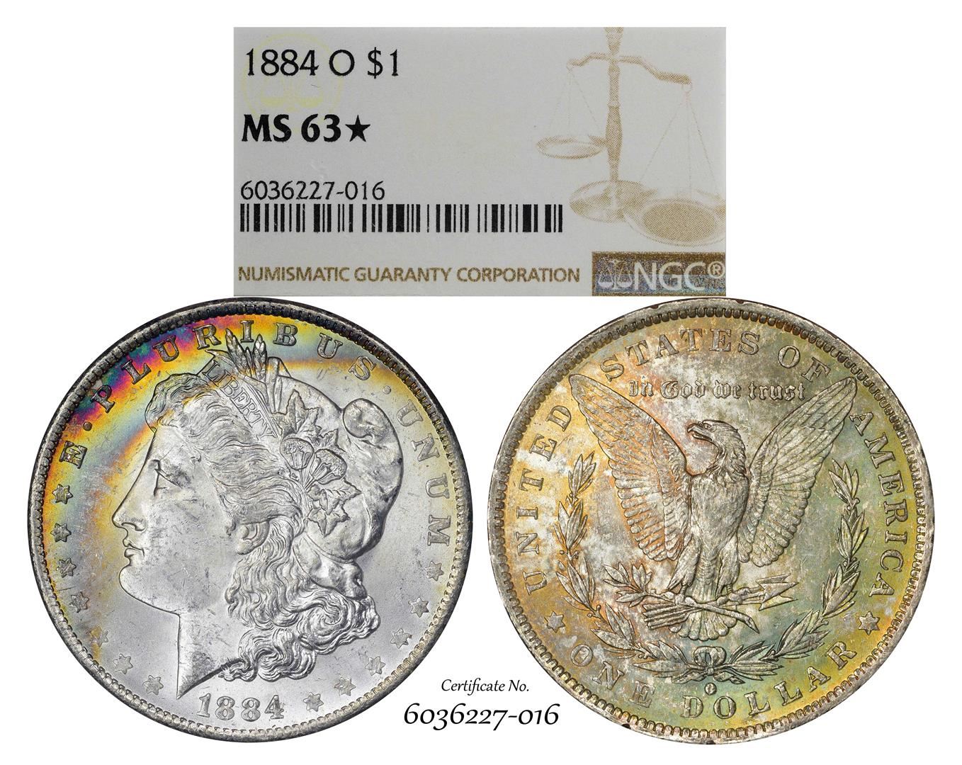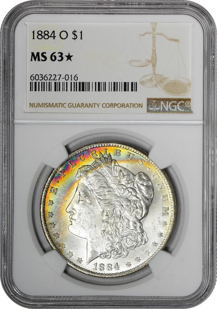 One 1884-O $1 Morgan Silver Dollar Coin NGC MS63* Star Amazing Toning. NGC Certified.