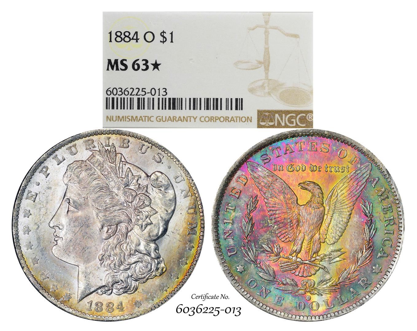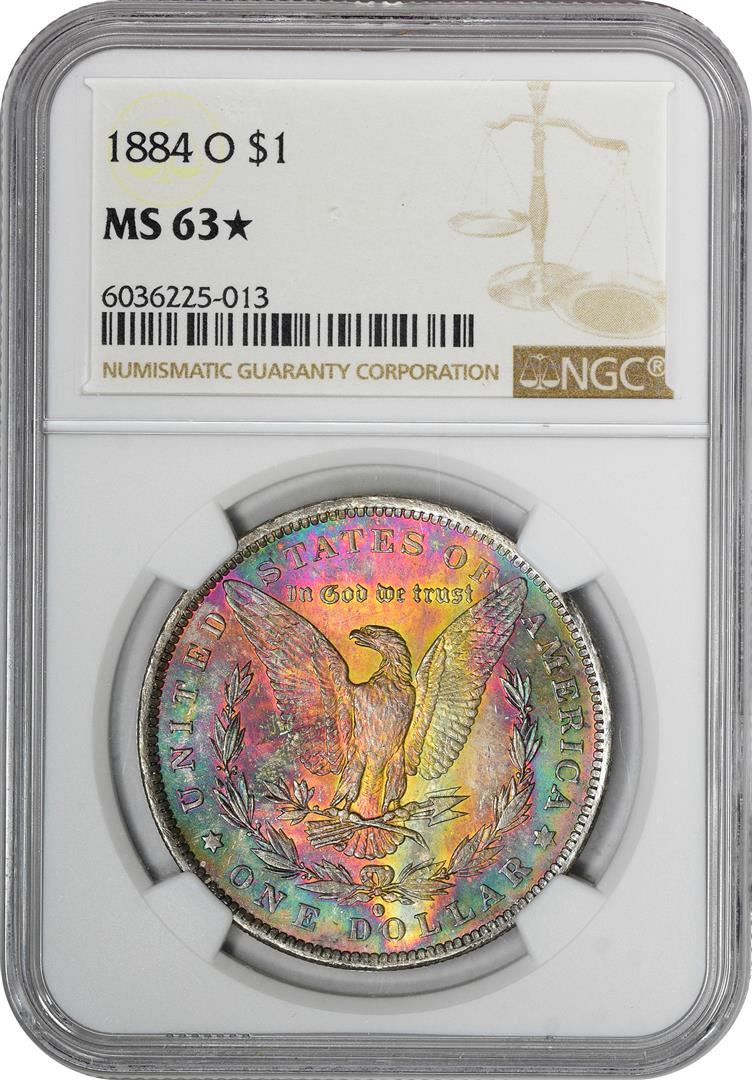 One 1884-O $1 Morgan Silver Dollar Coin NGC MS63* Star Amazing Toning. NGC Certified.