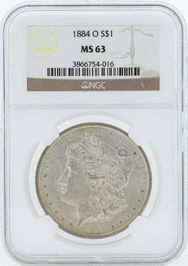 One 1884-O $1 Morgan Silver Dollar Coin NGC MS63. NGC Certified.