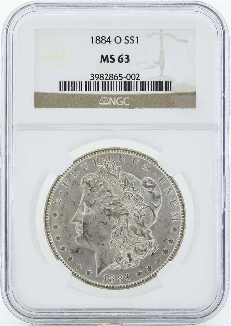 One 1884-O $1 Morgan Silver Dollar Coin NGC MS63. NGC Certified.