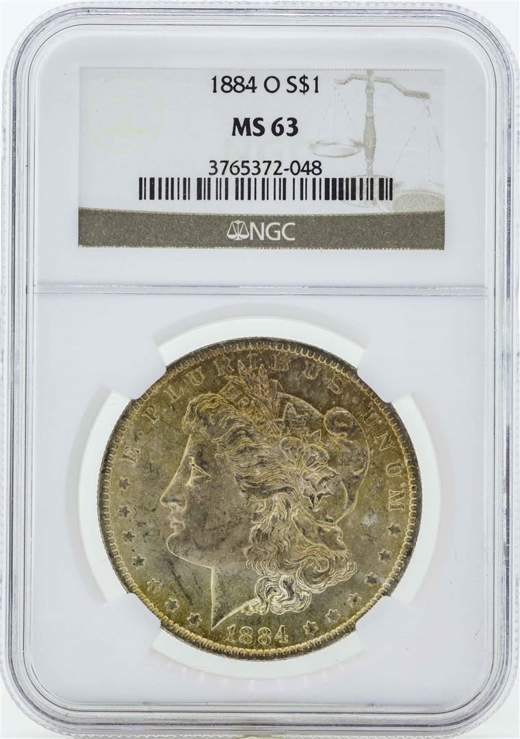 One 1884-O $1 Morgan Silver Dollar Coin NGC MS63. NGC Certified.