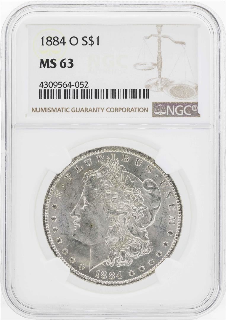 One 1884-O $1 Morgan Silver Dollar Coin NGC MS63. NGC Certified.