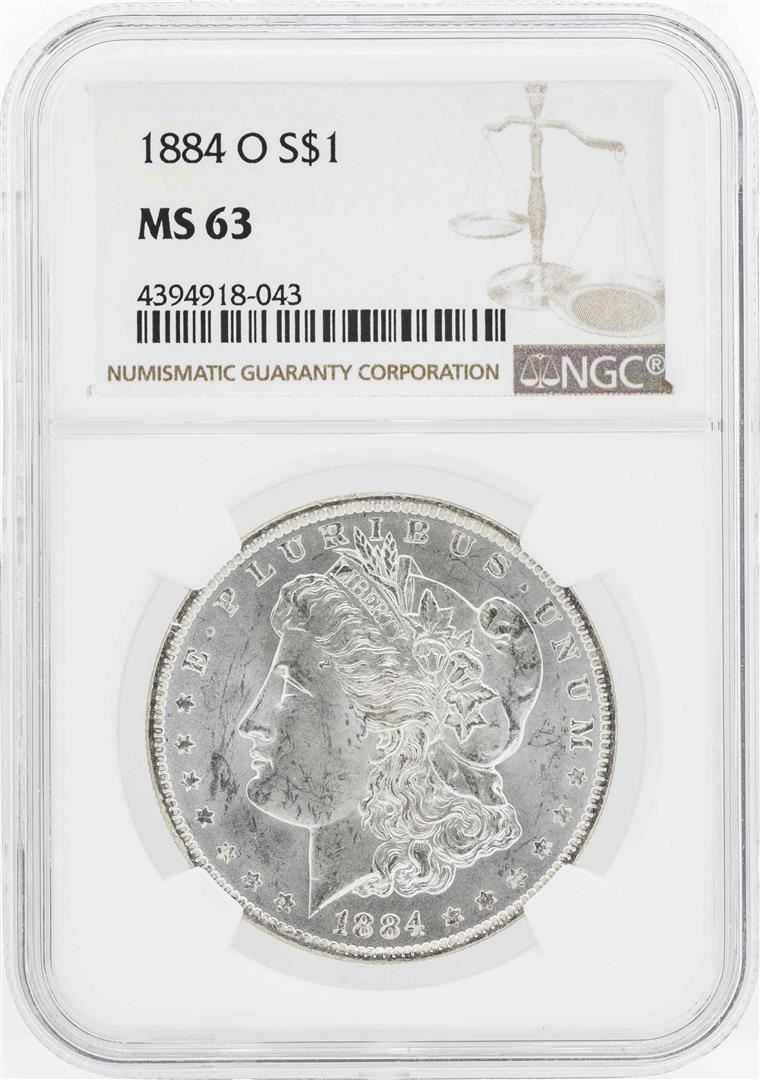 One 1884-O $1 Morgan Silver Dollar Coin NGC MS63. NGC Certified.