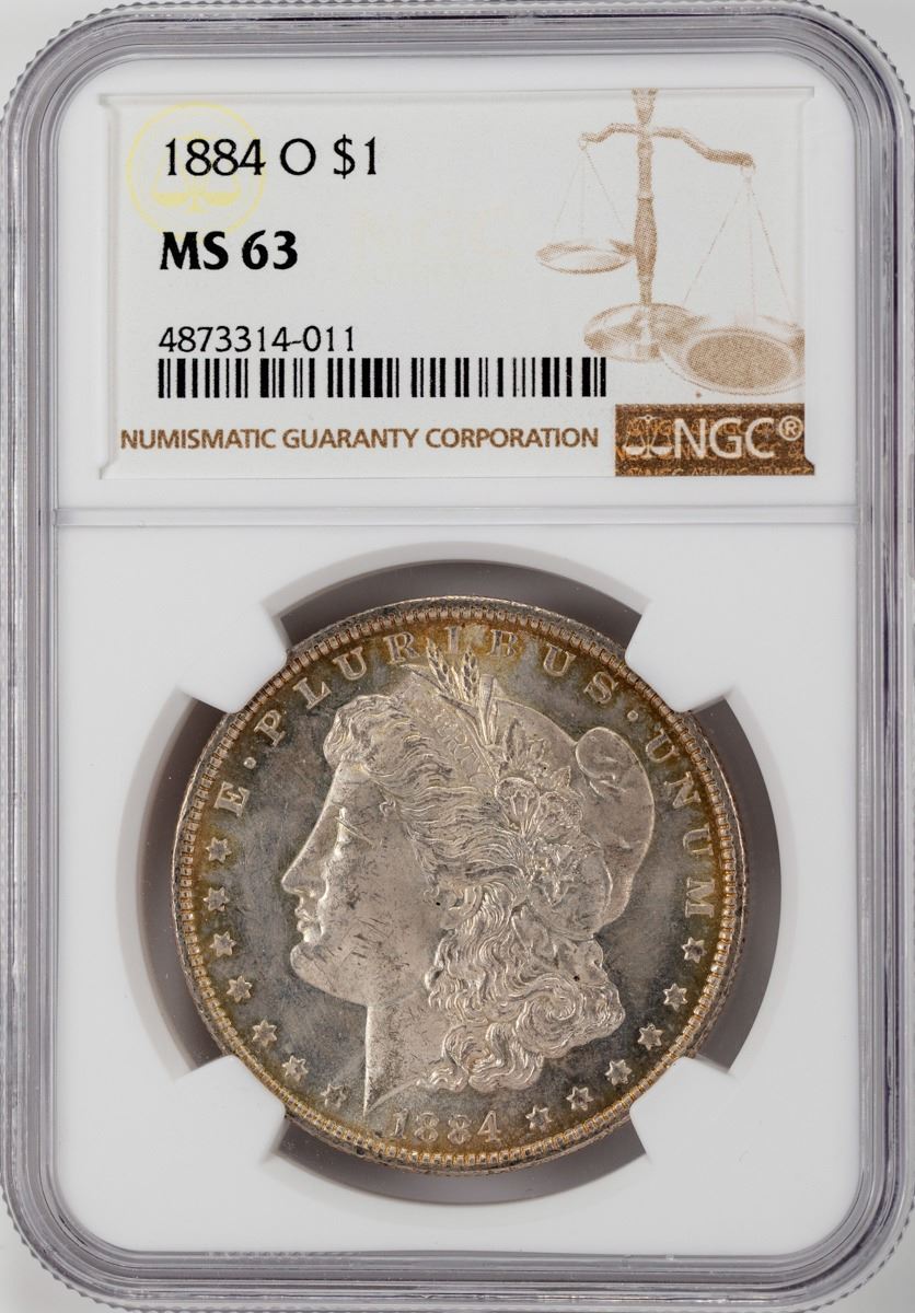 One 1884-O $1 Morgan Silver Dollar Coin NGC MS63.