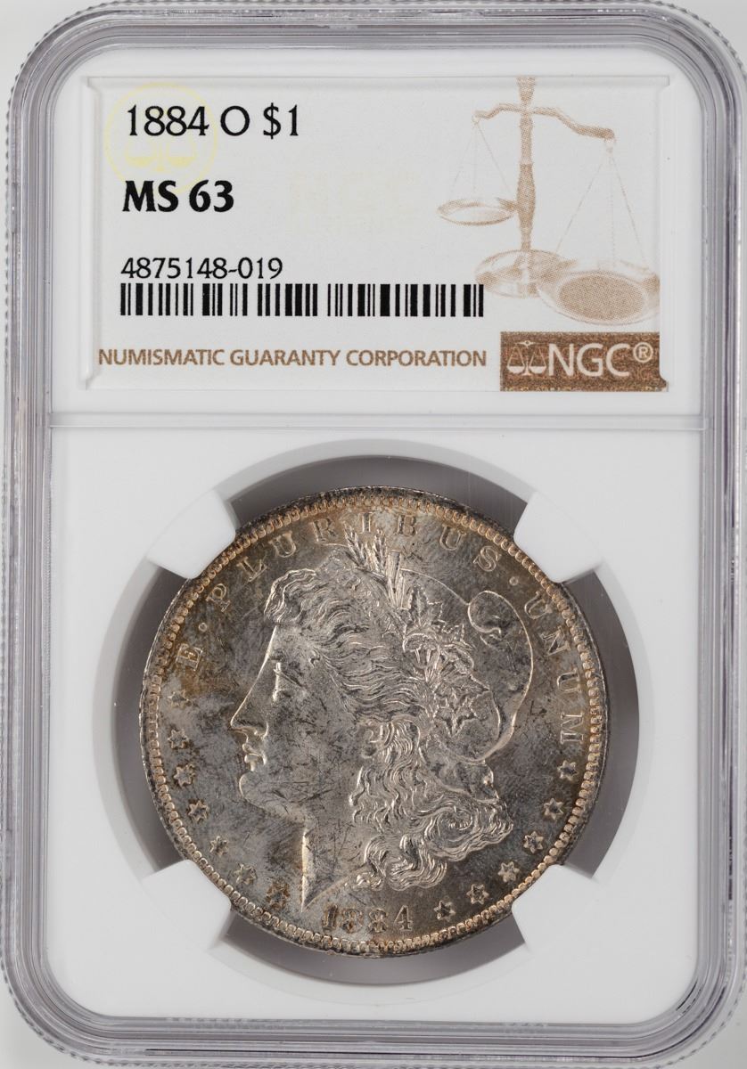 One 1884-O $1 Morgan Silver Dollar Coin NGC MS63.
