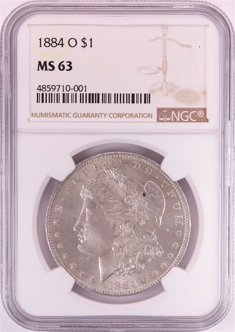 One 1884-O $1 Morgan Silver Dollar Coin NGC MS63. NGC Certified.