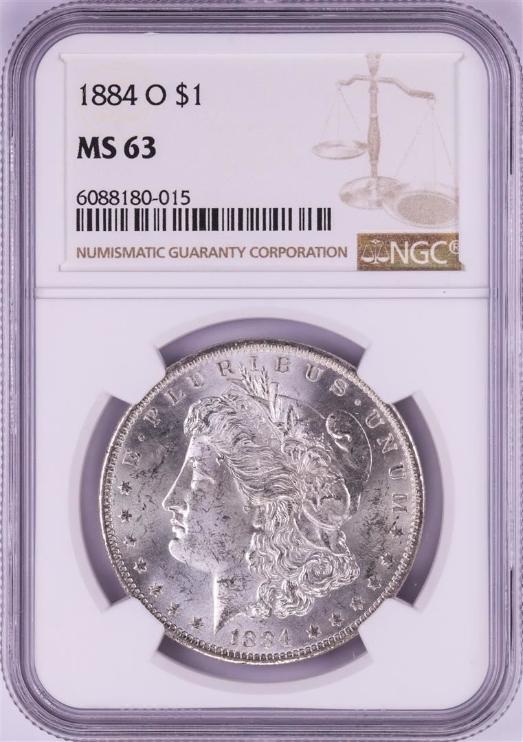 One 1884-O $1 Morgan Silver Dollar Coin NGC MS63. NGC Certified.
